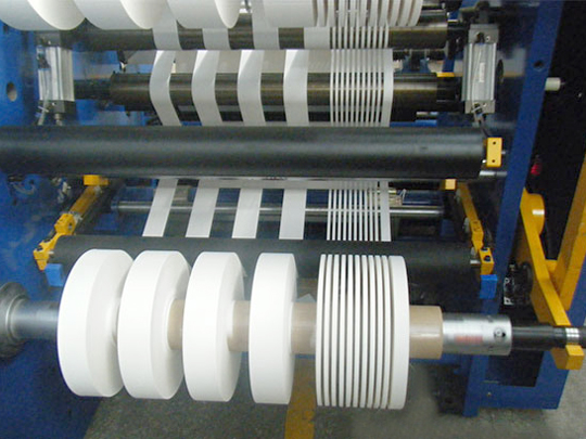 分切機(jī)是一種將寬幅紙張、云母帶或薄膜分切成多條窄幅材料的機(jī)械設(shè)備,常用于造紙機(jī)械、電線電纜云母帶及印刷包裝機(jī)械。分切機(jī)主要的運用于:云母帶、